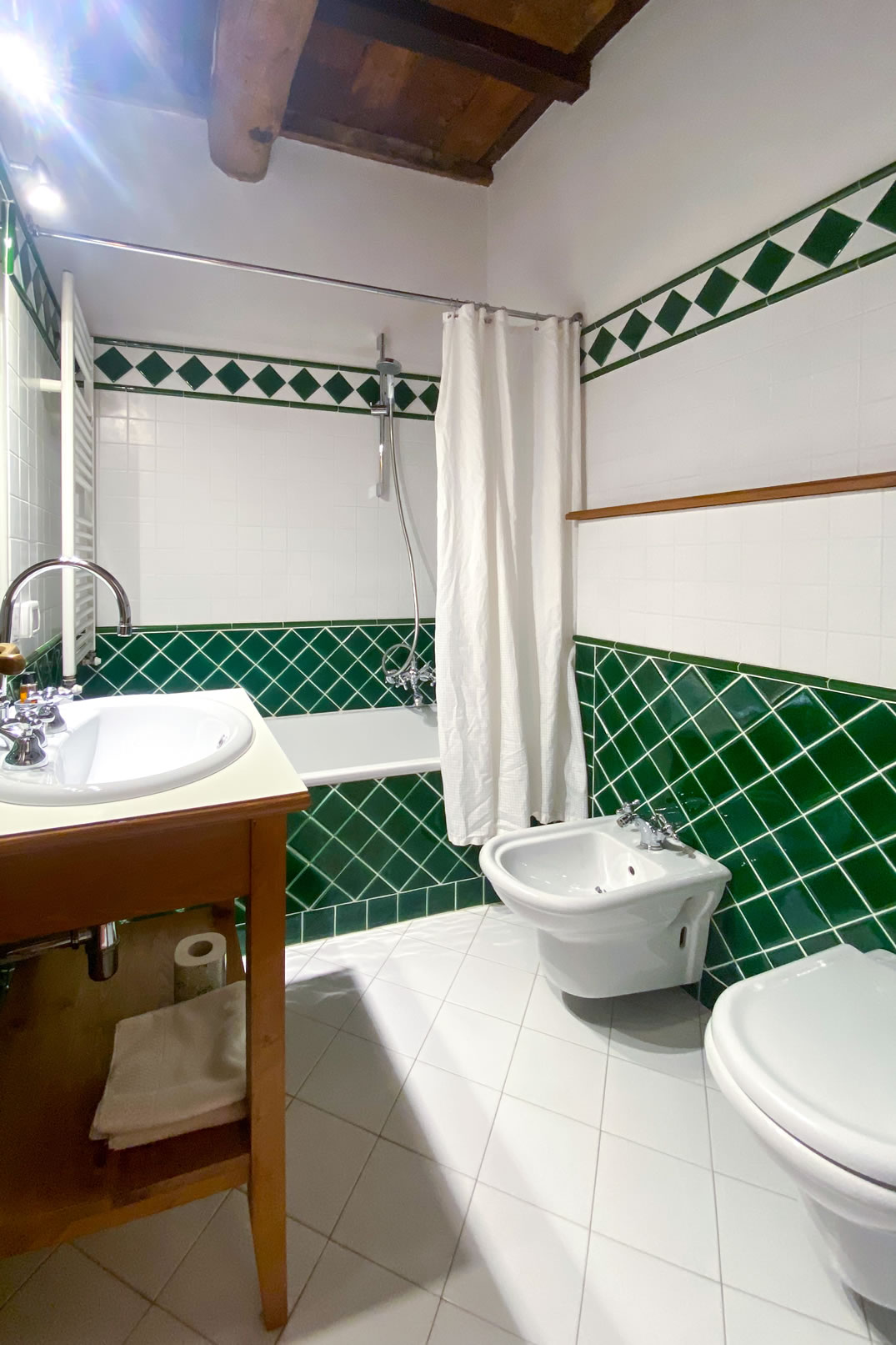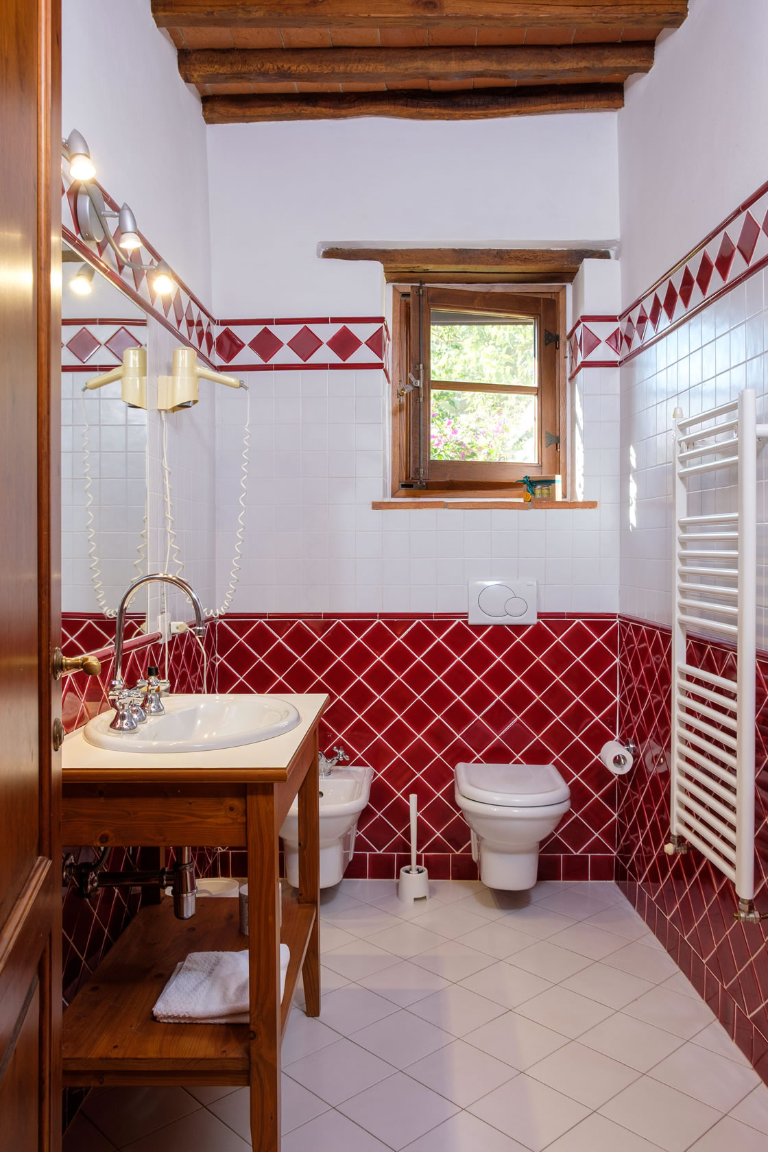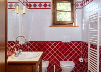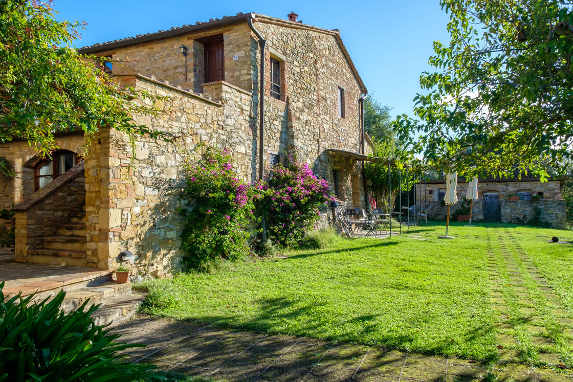 Lavanda 1 faces the main garden in Ticciaia farmhouse. The apartment is on one floor with a surface of 63 square metres and includes: a pleasant and large living area with kitchen corner and sofa bed, 1 large and elegant double bedroom with its private bathroom/shower and another double bedroom, 1 bathroom with shower. The apartment is equipped with air-conditioning. Apartment Lavanda 1 can be connected (through a double wooden door) with Lavanda 2 to form a suite able to comfortably host 6/8 people. Apartment is equipped with autonomous air conditioning.
